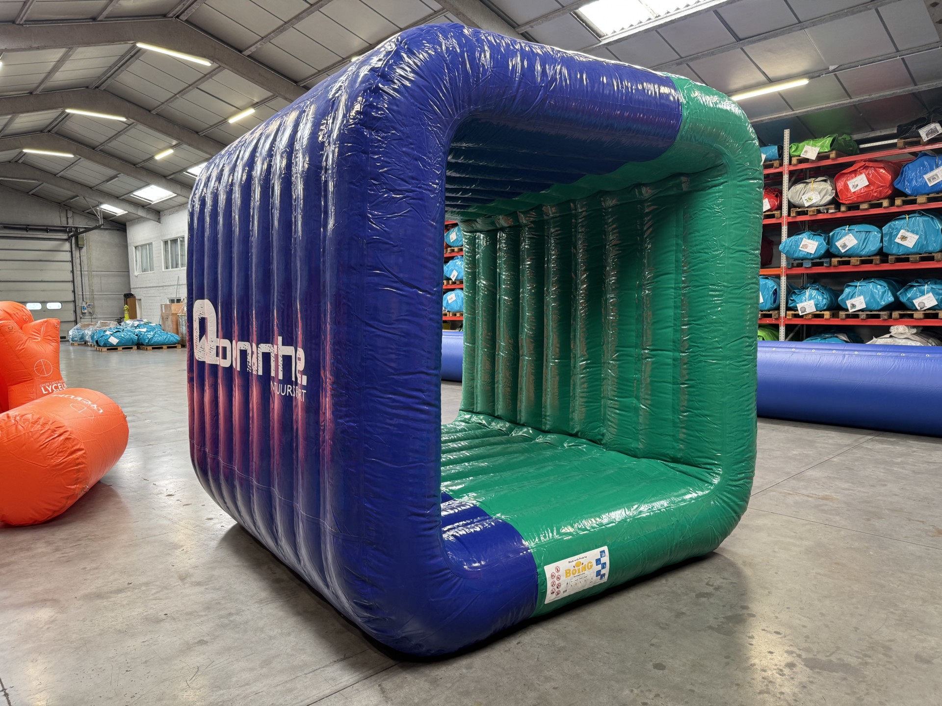 - Terrein vrij van scherpe voorwerpen of andere materialen die schade kunnen aanbrengen aan de opblaasbare kubus