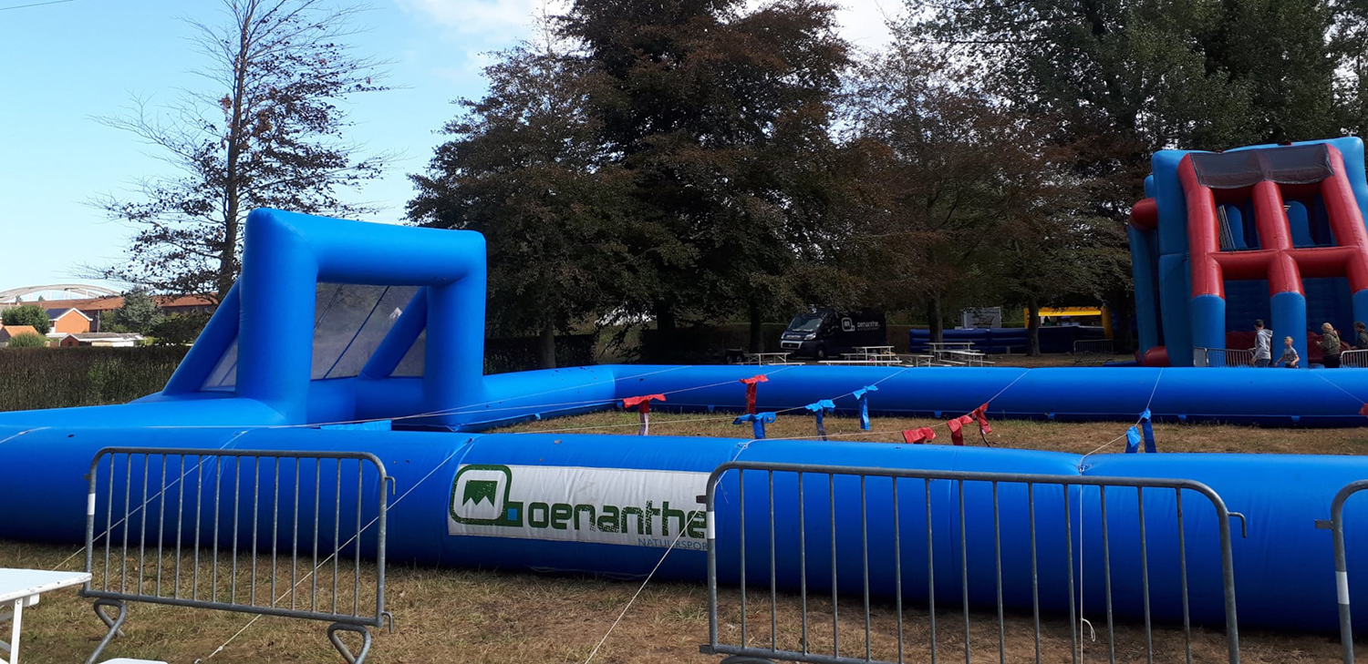 Met deze opblaasbare attractie speel je een potje voetbal zoals op een echte kickertafel: 8 tegen 8! 🟦8️⃣🟥8️⃣
