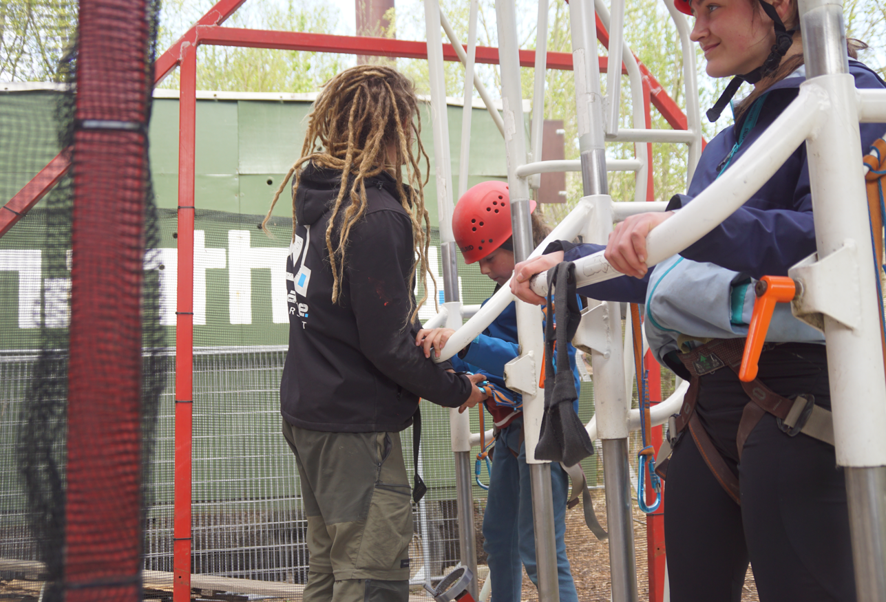 • Bij een grootschalig event is het aangeraden om 1 a 2 vrijwilligers te voorzien voor het organiseren van de wachtrijen of het helpen aandoen van de klimgordels